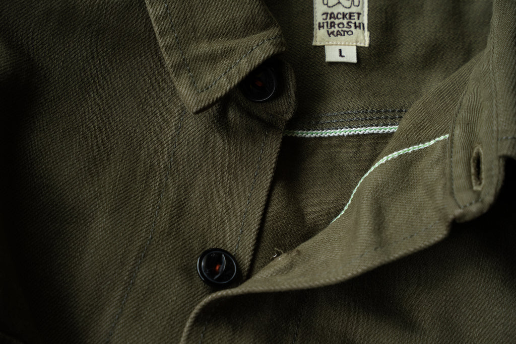 We took our 100% cotton 14oz Ecru denim and garment dyed them in a variation of earth tones for a palette that steps away from the world of indigo. This denim features a Green and white selvedge ID.