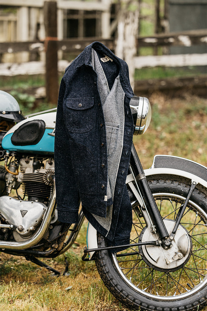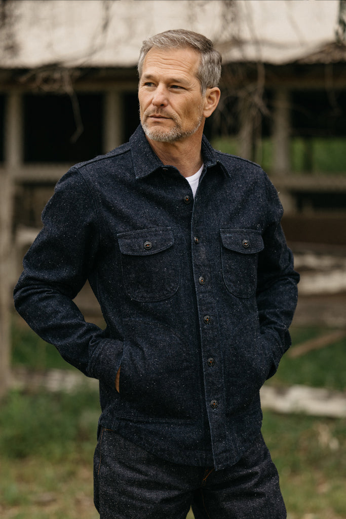 We had a vision of a new denim that after an extended search we found only one mill in Japan that could make it. Usually nep denim uses polyester in the fabric to make the neppy appearance but we wanted it to be an all natural 100% cotton denim.