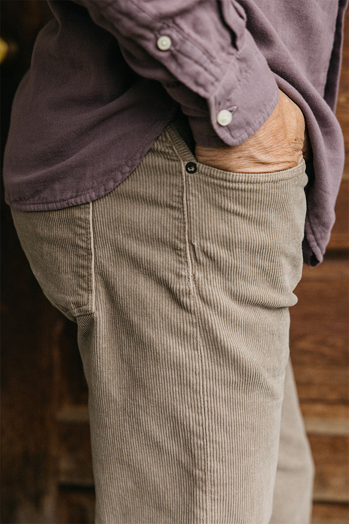 These pants utilize a 16 Wale corduroy for a more subdued texture. They have been garment dyed, for a slightly worn look. The combination of 97% cotton 3% polyurethane gives the perfect amount of stretch, without being overly stretchy.