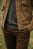 This jacket utilize a 16 Wale corduroy for a more subdued texture. They have been garment dyed, for a slightly worn look. The combination of 97% cotton 3% polyurethane gives the perfect amount of stretch, without being overly stretchy.