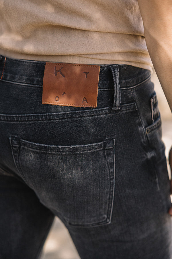This medium-rise cut has a relaxed fit, slight tapering from the knee to the ankle.