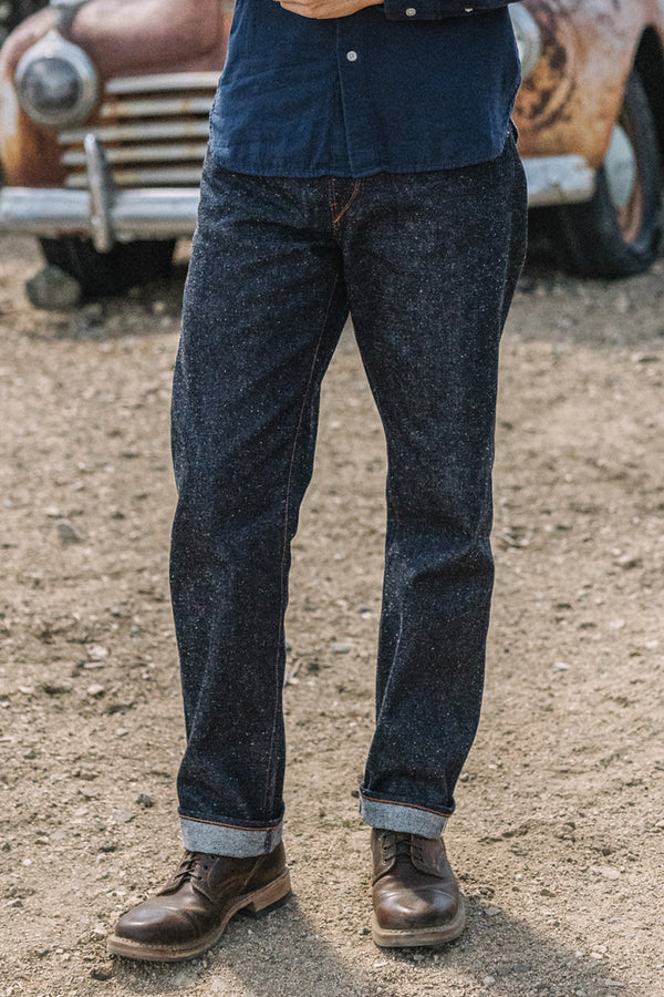 This high rise cut has the most relaxed fit with a wide leg opening.