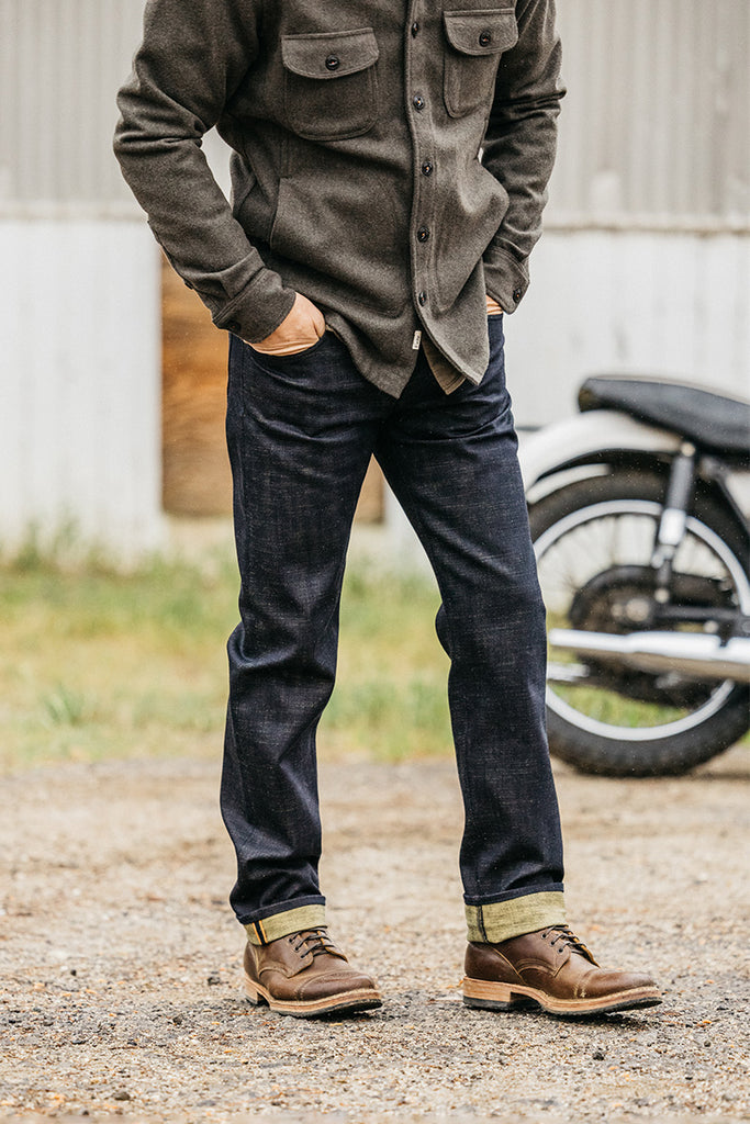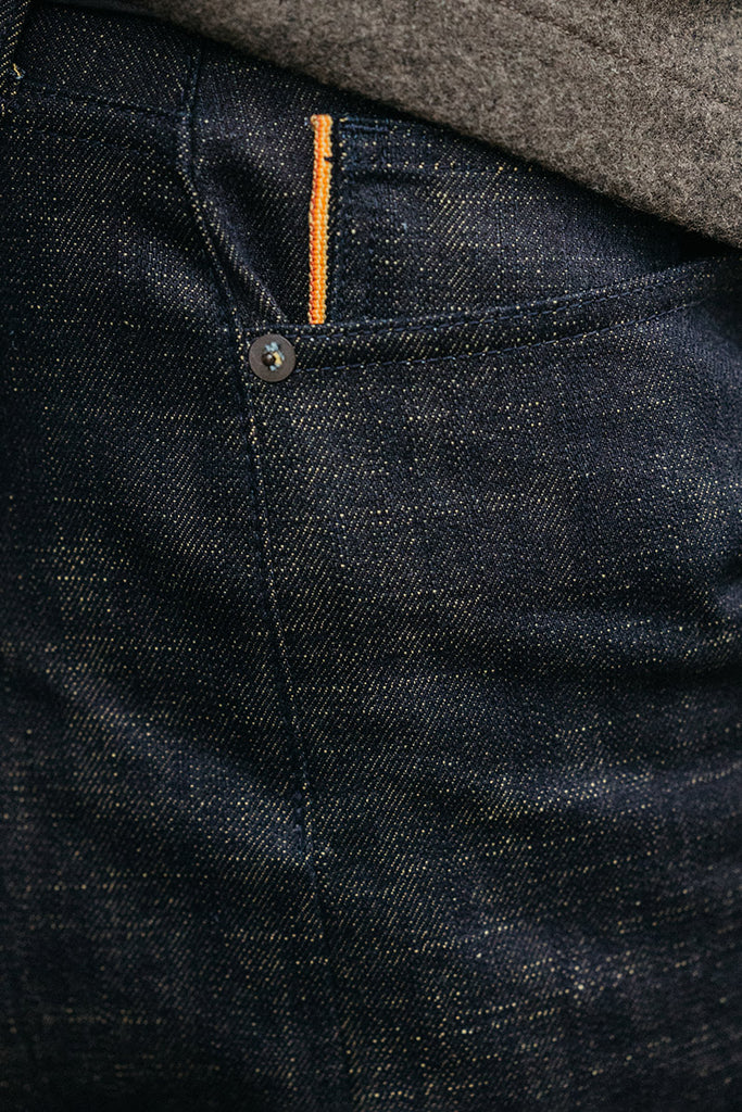 Slubby 13oz 4-WAY STRETCH SELVEDGE ™ boasts a distinctive colored weft that boldly sets it apart. You can cuff these jeans for maximum effect or leave them uncuffed allowing just the subtle tint of the weft showing through the denim for a slight shift in perspective.