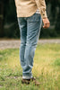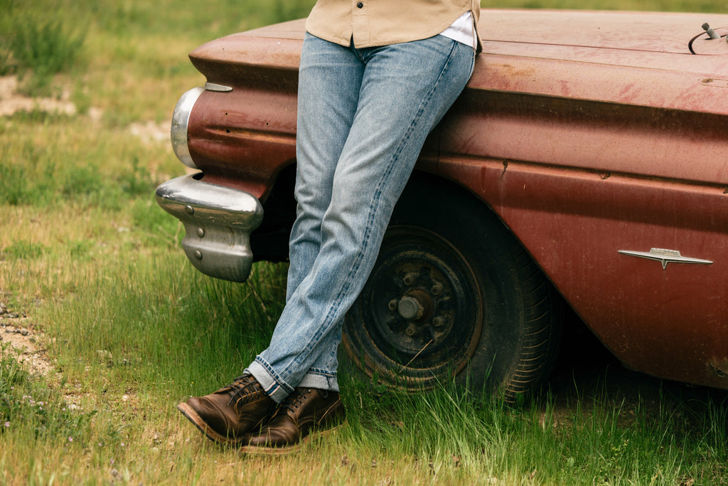 To make this a timeless pair of jeans, we chose our straight cut, “The Hammer” and the modern slim cut “The Pen”. The 12.5 ounce, 100% cotton denim does not have stretch but it will break in and mold to you, making it a pair you will want to wear for years. We wanted these jeans to be vintage down to the core details, so we introduced a button fly, using donut style laurel leaf buttons, which have been acid dyed to give them an authentic aged look. We also added a pop of color with a red leather patch, our own twist on the original. We are offering several versions of the Classic Slub Denim that represent different stages of aging.