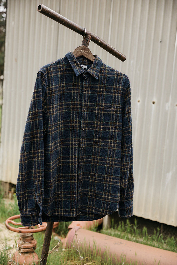 This season we have elevated our staple button-up with an air of twisted sophistication. The Ripper Shirt in Twisted Plaid is a special Japanese fabric that gives a natty nod to English woolen fabrics. The technique of twisting multiple colors of yarns together before weaving gives a very textured appearance, similar to a tweed fabric. We've retained the fabric's natural softness by forgoing brushing. Crafted from medium-weight 100% cotton, it's an ideal choice for a comfortable overshirt during brisk winter days.