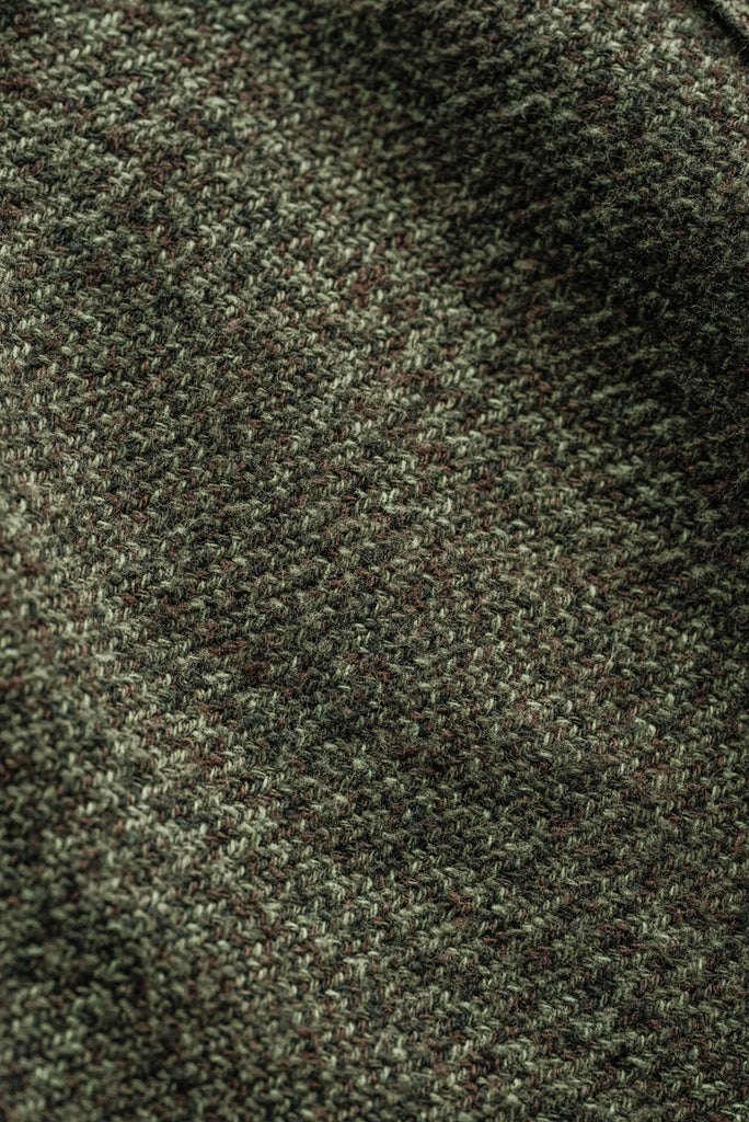 Another Kato original utilizing our Twisted Yarn Plaid fabric but this time with a subdued pattern for a more subtle approach to this beautifully textured American made flannel. The intricate look of this fabric is achieved by twisting grey, beige, and natural white yarns into the color yarns, giving it a unique color variation similar to a wool fabric. Because it is 100% cotton, The Brace shirt is far softer than most wool garments.