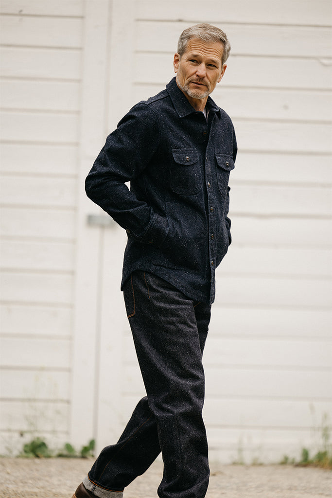 We had a vision of a new denim that after an extended search we found only one mill in Japan that could make it. Usually nep denim uses polyester in the fabric to make the neppy appearance but we wanted it to be an all natural 100% cotton denim.