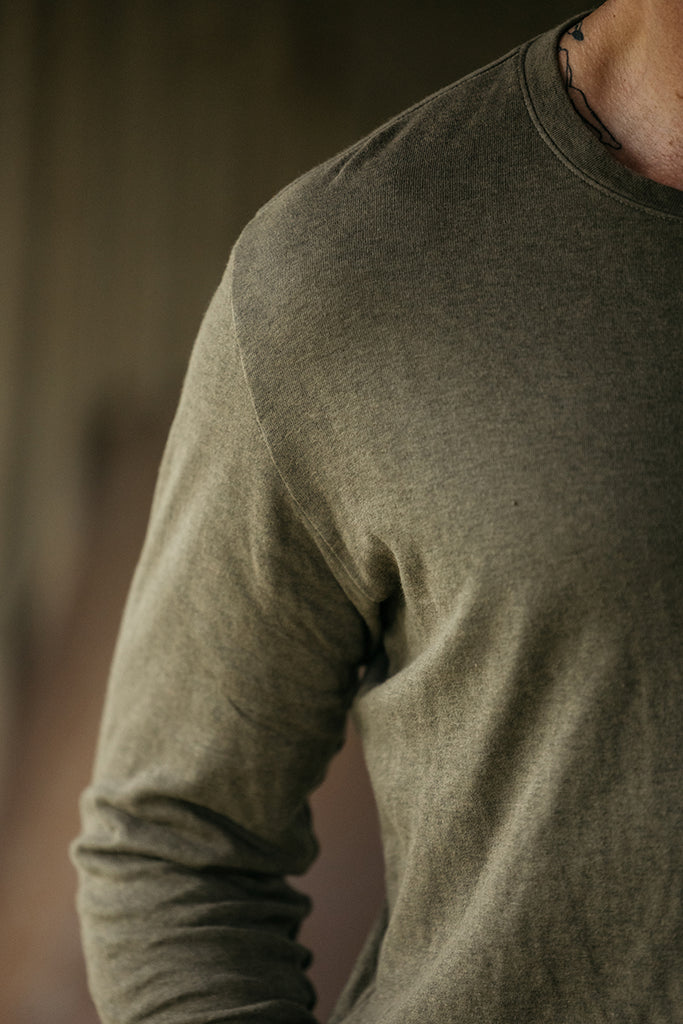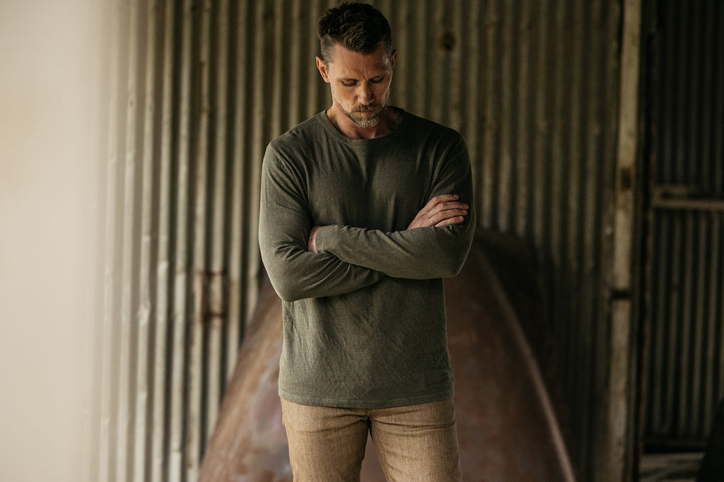Looks can be deceiving. The soft look and thick drape of this fabric gives the sophisticated look of a sweater, while feeling as light and easy-wearing as a long sleeve tee. “The Drill” in double knit is not only something you look forward to wearing when you get home after a long day, but something you can go to work or dinner in and not look underdressed. To dress it up, this shirt is perfect for layering over our “The Ripper” button ups.