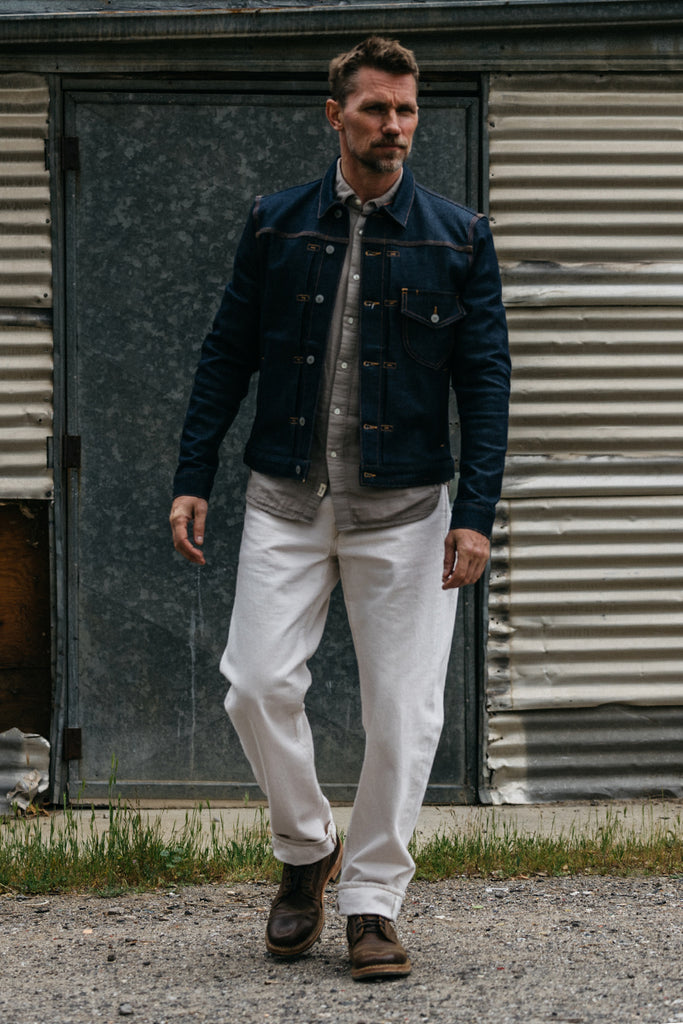 We took our 100% cotton 14oz Ecru denim and garment dyed them in a variation of earth tones for a palette that steps away from the world of indigo. Available in our latest cut, The Barrel, these jeans are washed and ready to be worn and faded to their unique potential. This denim features a Green and white selvedge ID.