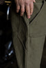 The tool pocket designed in the Kato Blade shape was inspired by the original Kato jeans.Other details also include Military buttons, rounded back pockets, and slanted hip pockets.