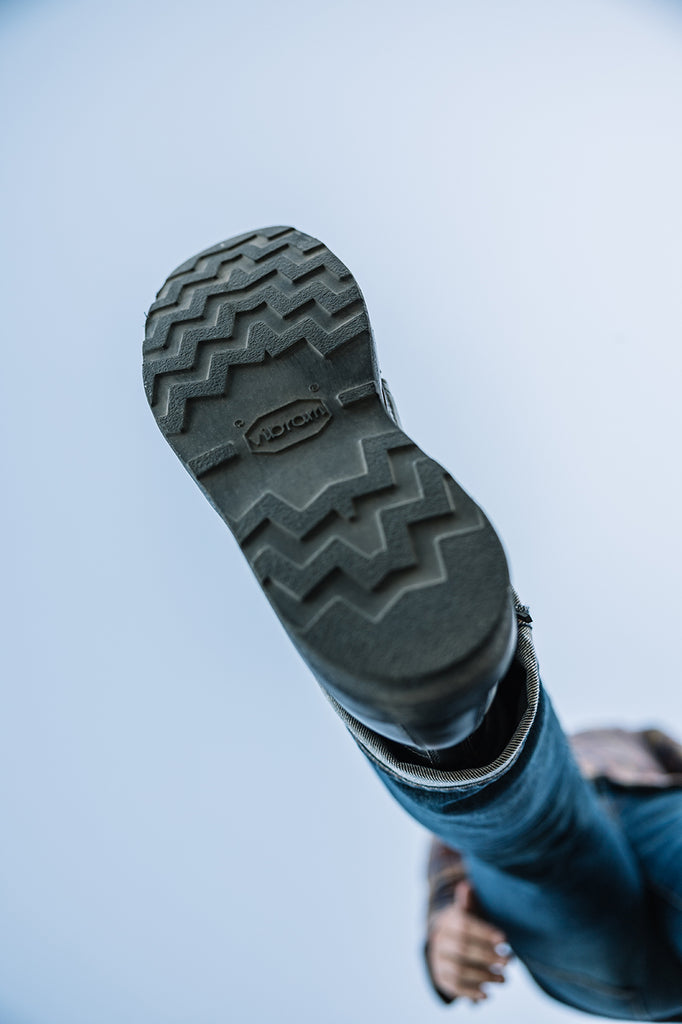 The boot features a black Vibram Christy Crepe sole, providing both grip and presence. The white sole stitching thread contrasts against all-black stitching for a nod to vintage workwear aesthetics. Handsewn welts are rarely done today because of the time and skill needed, but they increase the durability, function, and beauty of a masterfully crafted pair of boots. The handsewn stitchdown construction allows the boots to be resoled time and time again, so your boots can last a lifetime.