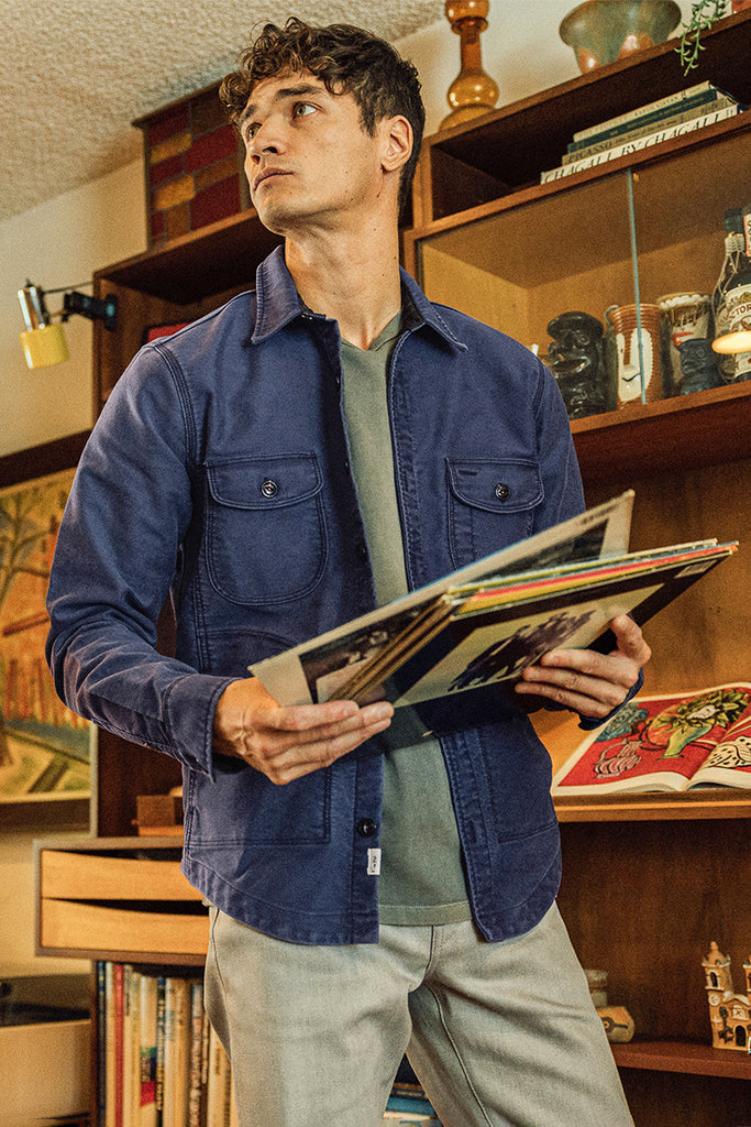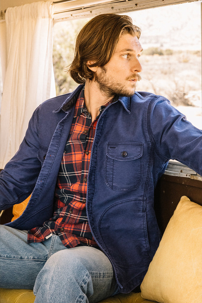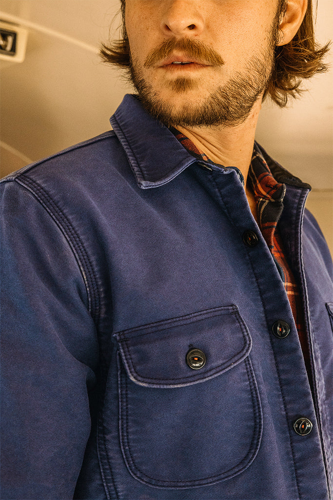 This 100% cotton shirt jacket has been sulfur piece dyed and heavily rinsed for a very broken-in look and feel.