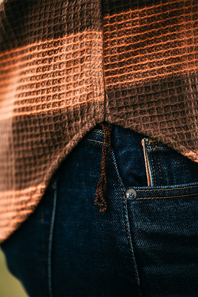 The chainstitch runoff found on the side gussets is an interesting detail and a nod to vintage shirts. Early workwear shirts were made with authentic high-quality sewing machines that produced this run-off effect when finished. These would usually get cut off in production but were occasionally missed. Vintage collectors would find these rarities and they became highly sought after, not only for their rarity but because it was a true sign a shirt was made using authentic vintage sewing machines. We make Kato work shirts following the footsteps of these vintage treasures and the chainstitch runoff is a testament to its quality and heritage. You can choose to wear them with pride or cut them off without compromising durability.