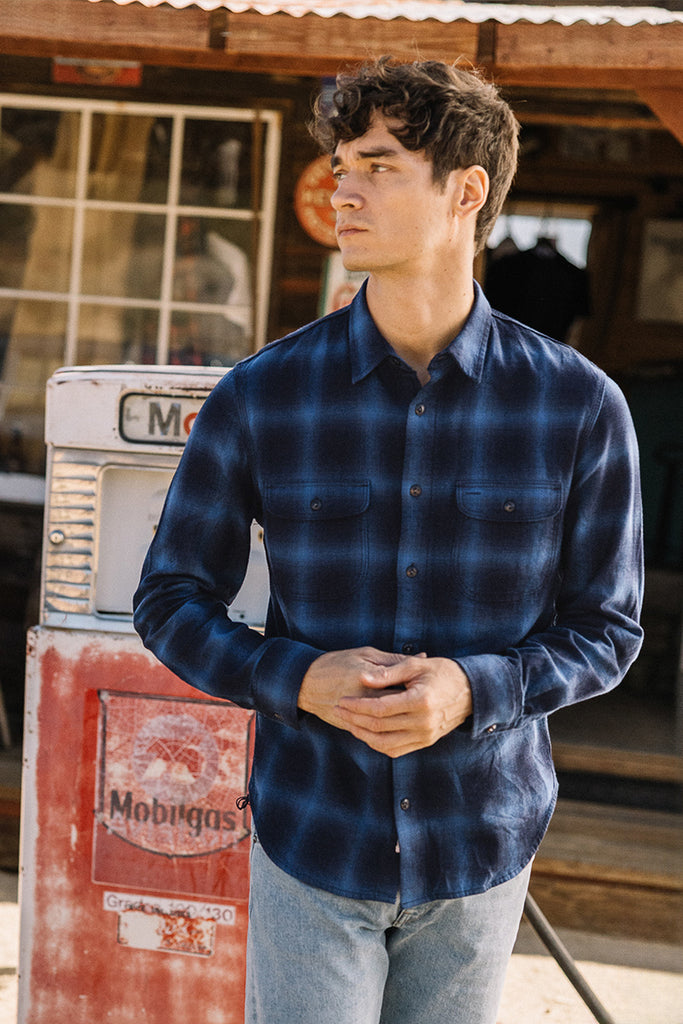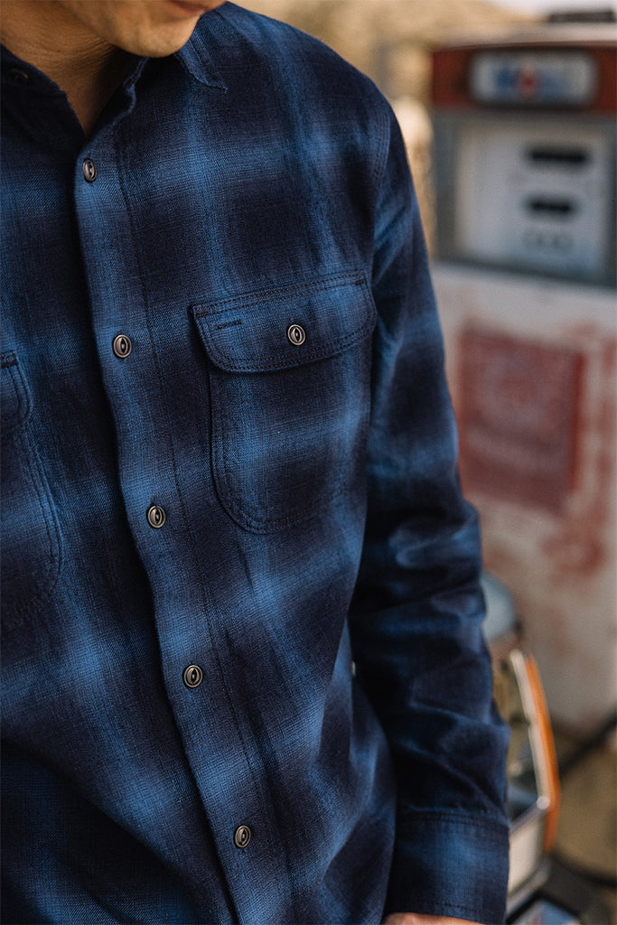 The subtle and more laid-back member of the plaid family. Soft gradient edges give it an easy, go-with-the-flow vibe—for quiet days and open-ended plans. Dyed with pure indigo, it will fade over time like your favorite pair of jeans, developing a character that’s entirely your own. A shirt for those who prefer to move under the radar, but always forward.
