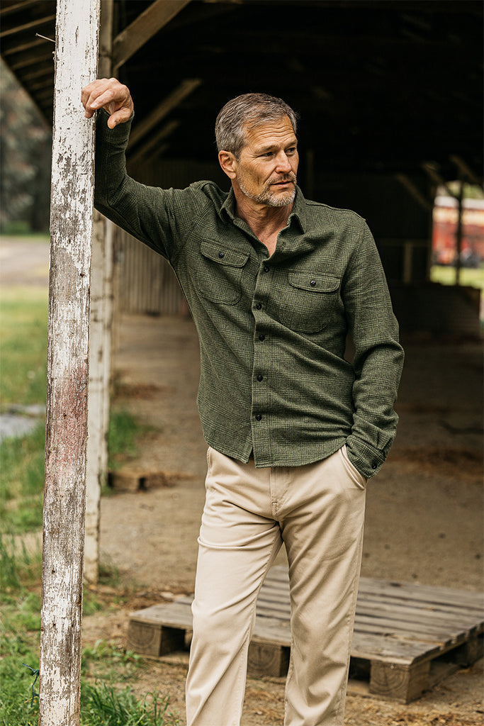 Inspired by the classic and rugged vintage workwear shirt, The Brace is built tough, but with the comfort you expect from Kato. For this design, we focused on the workwear details that add durability and functionality to the garment. Triple stitching on the shoulders, back, and side seams and the bar-tacked reinforced pockets add unparalleled strength to this men’s shirt. The discreet and easily accessible pen pocket gives The Brace a nice utilitarian detail.